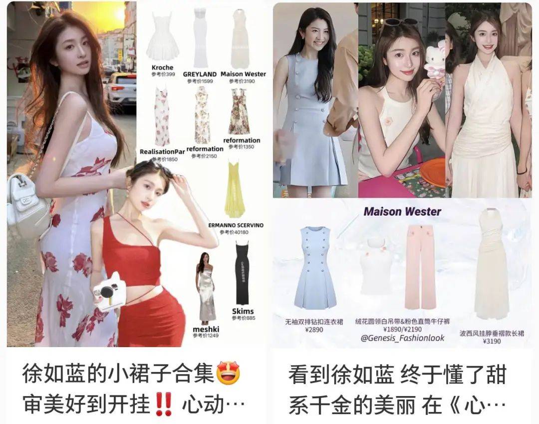 各种风格都能驾驭,节目上到私底下的风格可甜可性感,晒出来的穿搭有居家舒适的宽松吊带裙,也有职场风,有设计感的OL套装。